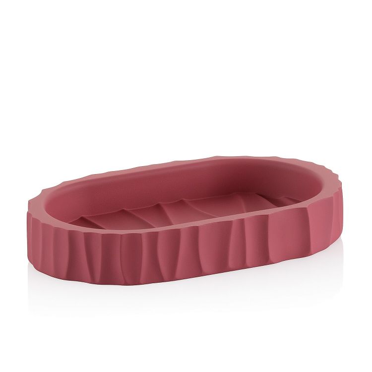In außergewöhnlichem Design und mit Wellenoptik: die Seifenschale Merida mit besonderer Oberflächenstruktur. Die gewellte Oberfläche verleiht der kompletten Badserie die besondere Optik. Die ovale Seifenablage ist aus Polyresin und sie ist 15 cm lang, 9 cm breit und 2,5 cm hoch. Farbe: Himbeerrot.