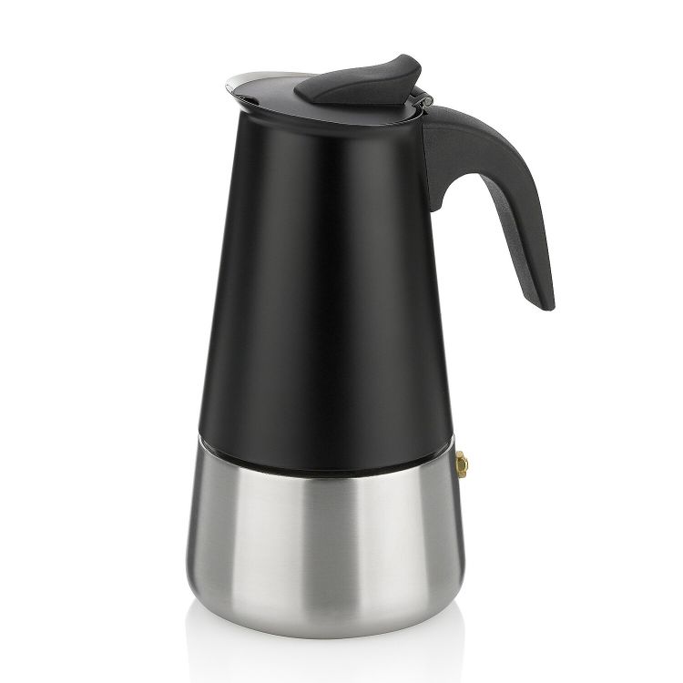 Kaffeegenuss pur! Mit der Espressokanne Ferrara aus hochwertigem Edelstahl gelingt Ihnen wunderbarer Kaffee. Geeignet ist der Espressokocher für alle Herdarten. Ø 9,0 cm, Höhe 17 cm für 4 Tassen (200 ml).