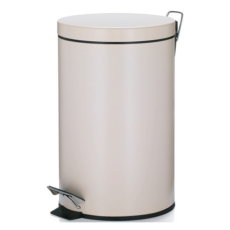 Treteimer Malta in Beige aus pulverbeschichtetem Metall, die Oberfläche ist matt. Die Form des Tretmülleimers ist schicht. Der Inneneimer mit Tragehenkel ist aus schwarzem Kunststoff. Ein weiteres Plus ist das Silent-Close-System: Das heißt, der Deckel des Tretabfalleimers schließt ohne Klappern, sanft und leise. Der Abfalleimer ist 40 cm hoch, der Durchmesser beträgt 25 cm. Volumen 12 l. Lieferung im Geschenkkarton.
