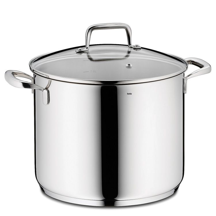 Gemüsetopf Flavoria aus Edelstahl in glänzender Optik – Dieser hochwertig verarbeitete Topf glänzt nicht nur optisch, sondern bietet eine ganze Reihe nützlicher Eigenschaften. Die praktische Innenskalierung, ein Glasdeckel mit Dampfauslassventil und ein Energiesparboden bieten definitiv einen Mehrwert. Geeignet ist dieses Kochaccessoire für alle Herdarten! Sie benötigen beispielsweise Ihre Suppe in größeren Mengen? Dieser Gemüsetopf gehört definitiv zu den größeren Topfvarianten: 8,0 Liter mit 24 cm Durchmesser bei einer Höhe von 19,5 cm.