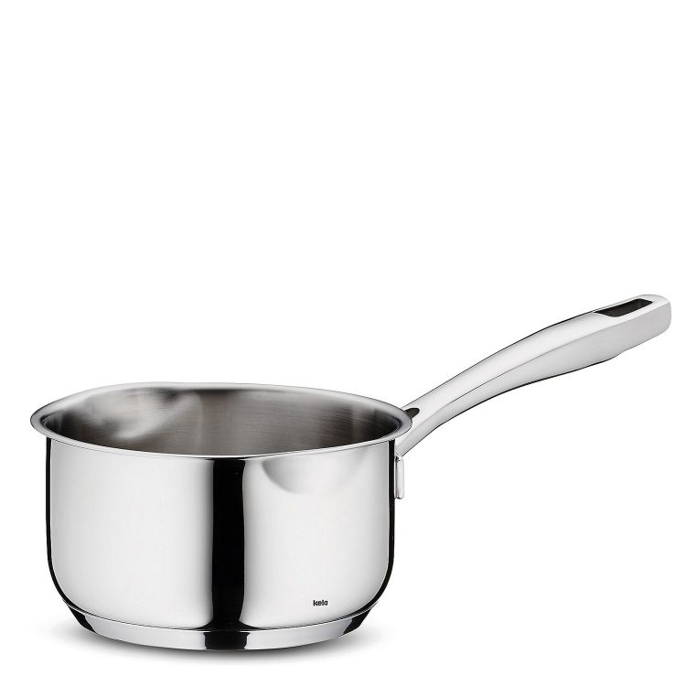 Stielkasserolle Flavoria aus Edelstahl in glänzender Optik – Diese hochwertig verarbeitete Stielkasserolle glänzt nicht nur optisch, sondern bietet eine ganze Reihe nützlicher Eigenschaften. Beispielsweise ermöglichen 2 praktische Ausgießnasen ein topffreies Ausgießen. Auch die praktische Innenskalierung und ein Energiesparboden bieten definitiv einen Mehrwert. Geeignet ich dieses Kochaccessoire für alle Herdarten! Stielkasserolle Flavoria 0,6 Liter mit 12 cm Durchmesser.