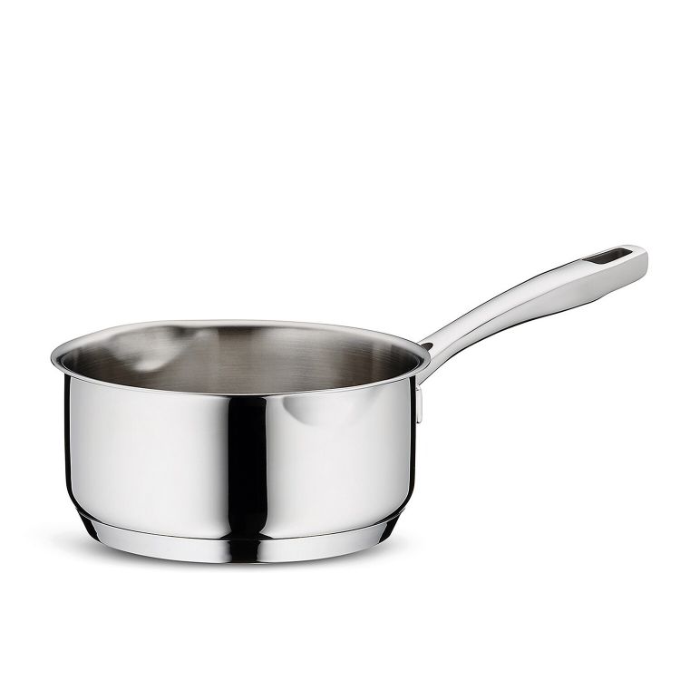 Stielkasserolle Flavoria aus Edelstahl in glänzender Optik – Diese hochwertig verarbeitete Stielkasserolle glänzt nicht nur optisch, sondern bietet eine ganze Reihe nützlicher Eigenschaften. Beispielsweise ermöglichen 2 praktische Ausgießnasen ein topffreies Ausgießen. Auch die praktische Innenskalierung und ein Energiesparboden bieten definitiv einen Mehrwert. Geeignet ich dieses Kochaccessoire für alle Herdarten! Stielkasserolle Flavoria 0,6 Liter mit 12 cm Durchmesser.