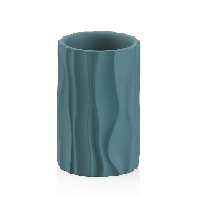 In außergewöhnlichem Design und mit Wellenoptik: der Becher Merida mit besonderer Oberflächenstruktur. Die gewellte Oberfläche verleiht der kompletten Badserie die besondere Optik. Der Becher ist aus Polyresin mit einem Durchmesser von 10,5 cm. 7 cm hoch. Farbe: Himbeerrot.