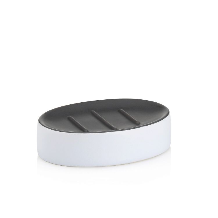 Seifenschale Matsi passend zu den Treteimern Mats. Matsi aus hellgrauem Keramik mit matter Optik. Die Auflagefläche ist Schwarz. In der Größe 12,5 x 8,5 x 3 cm.