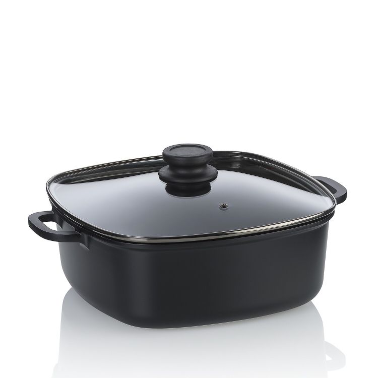 Ergänzen Sie Ihre Küche mit der Atura Servierpfanne aus Aluguss, die mit einem großzügigen Durchmesser von 32 cm und einem Volumen von 5 Litern ideal für größere Portionen ist. Die Pfanne verfügt über einen induktionsfähigen Allherd-Boden, der für eine gleichmäßige Hitzeverteilung sorgt und auf allen Herdarten verwendet werden kann. Die langlebige Keramikversiegelung, die frei von PFOA und PTFE ist, bietet einen hervorragenden Antihafteffekt und erleichtert die Reinigung. Der mitgelieferte Deckel hält die Wärme optimal im Inneren.