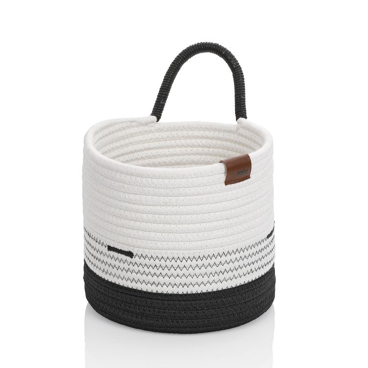 Da macht Ordnung halten und Aufräumen Spaß: Schwarz/Weißer Aufbewahrungskorb aus Mischfaser - aus der Serie Hedda von kela. Der vielseitig einsetzbare und robuste Korb in geflochtener Optik hat die Maße: 18 cm Ø und 17 cm hoch.