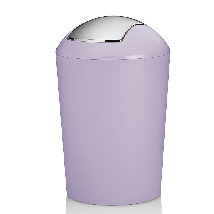 Toller Tisch-Schwingdeckeleimer Marta in schlichter Farbkombination. Durch seine reduzierte gerade Form mit leicht gerundetem Schwingdeckel und die Kombination von violettem Eimer und silberfarbenem Schwingteil wirkt der Mülleimer elegant und dient wunderbar als Blickfang. Der Schwingdeckeleimer aus Kunststoff hat einen Durchmesser von 15 cm und ist 21 cm hoch. Volumen von 1,7 l.