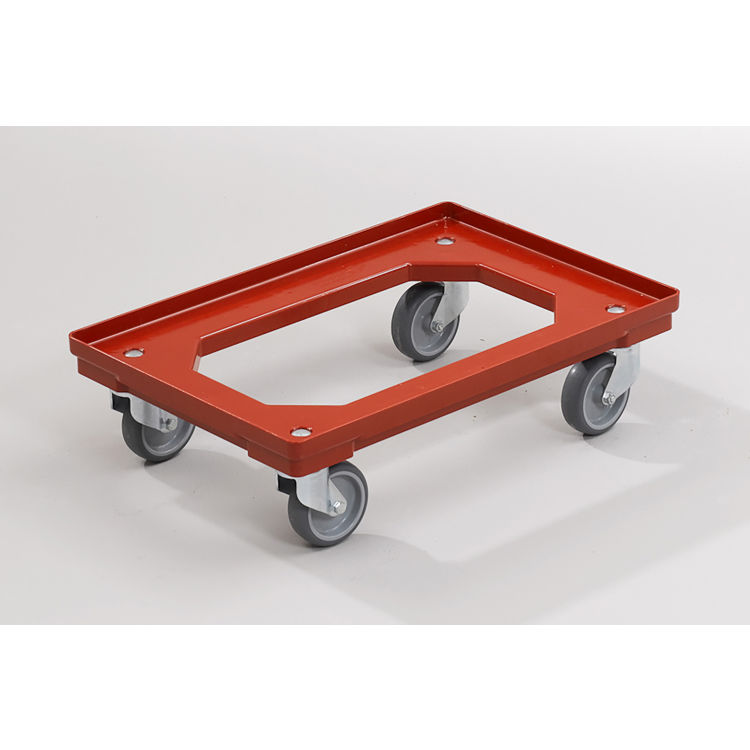 Wagen im Format 600 x 400 mm für 10-Liter-Behälter. Material: naturfarbenes, PPC-gefärbtes Polypropylen