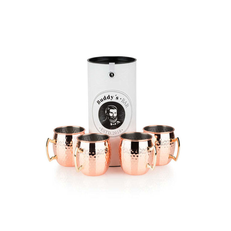 Das Becher-Set MOSCOW MULE von Buddy’s Bar überzeugt durch seine ausdrucksstarke Optik und hochwertige Verarbeitung. Gefertigt aus robustem Edelstahl, bietet es eine langlebige Qualität für den professionellen Baralltag ebenso wie für den anspruchsvollen Heimgebrauch. Die gehämmerte Oberfläche in charakteristischem Antik-Kupfer-Look verleiht den Bechern eine markante Struktur und sorgt für eine besondere Haptik sowie einen stilvollen Vintage-Charakter. Ideal für klassische Moscow Mule Cocktails und kreative Drink-Variationen, unterstützt das Set eine aufmerksamkeitsstarke Präsentation am Tresen oder Tisch. Für eine langfristige Oberflächenqualität wird die Reinigung per Hand empfohlen.