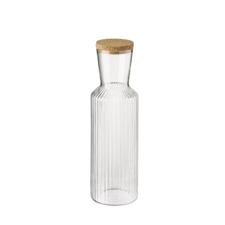 Die Glaskaraffe LINES verbindet klare Linienführung mit natürlicher Materialästhetik und eignet sich ideal für Gastronomie, Hotellerie oder den stilvoll gedeckten Tisch im privaten Bereich. Der hochwertige Glasbehälter ermöglicht eine ansprechende Präsentation von Wasser, Säften oder hausgemachten Getränken und bietet eine freie Sicht auf den Inhalt. Der Deckel aus Kork setzt einen warmen, modernen Akzent und schützt zugleich vor äußeren Einflüssen. Die schlanke Silhouette unterstreicht das zeitgemäße Design und fügt sich harmonisch in unterschiedliche Tischkonzepte ein. Zur Schonung der Materialien wird eine Reinigung per Hand beziehungsweise mit einem feuchten Tuch empfohlen, da die Karaffe nicht spülmaschinengeeignet ist.