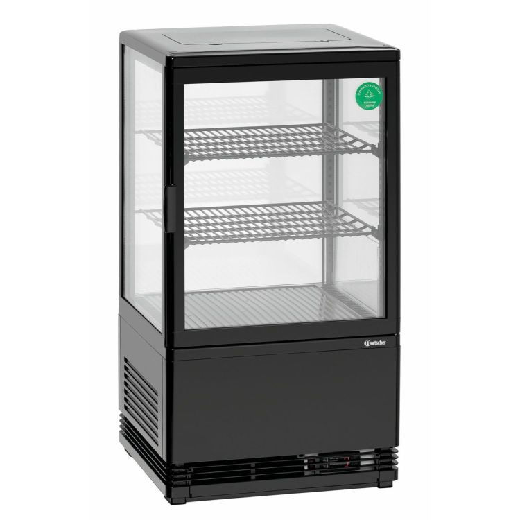 La Mini vitrina refrigerada 58L-SW de Bartscher está fabricada en plástico y cristal. Las puertas están alineadas en la parte delantera, con una bisagra a la derecha. La vitrina mini refrigerada 58L-SW de Bartscher tiene una función de descongelación automática. Además, la placa calefactora tiene un indicador luminoso de encendido/apagado y un botón de control.