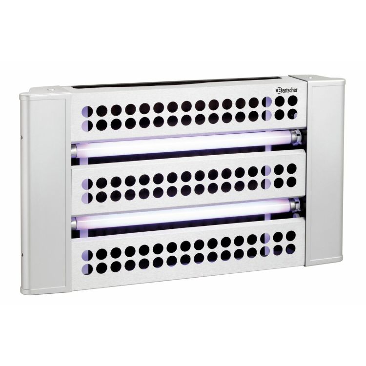 Montage mural ou utilisation en pose libre. Destructeur d'insectes hygiénique, silencieux et sans odeurs. Les insectes sont attirés par les UV des tubes lumineux et restent accrochés à la feuille engluée située à l'arrière. Bâti en matière plastique et aluminium. 2 tubes fluorescents UVA : 2x15 W. Feuille engluée : L 39 x H 31,3 cm. Champ d'action 10 m. Garantie 2 ans. Puissance : 30 W / 230 V, 50/60 Hz. Livré avec 2 feuilles engluées et matériel de fixation murale. Poids 2,4 kg.