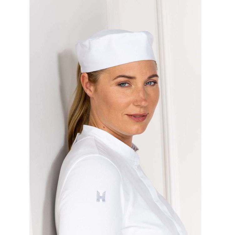 Calot d'une hauteur d'environ huit centimètres. Cette toque en taille unique est dotée d'un élastique réglable à l'intérieur.
