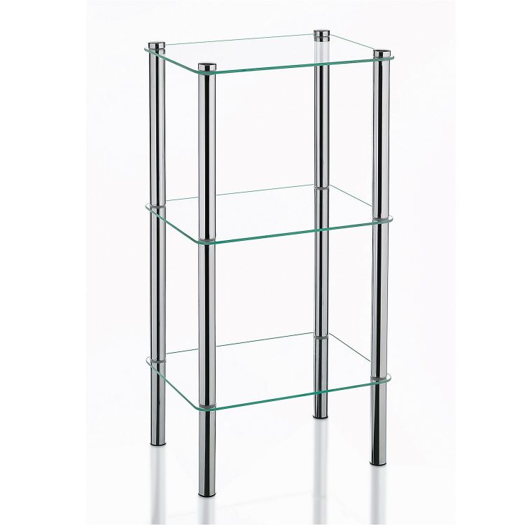 Étagère en métal chromé ou en métal peint par poudrage. 3 étagères en verre de sécurité.
