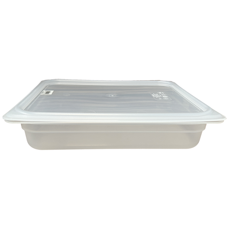 Bac Gastro GN 1/2 en polypropylène sans BPA conforme aux spécifications gastronormes CEN EN 631-1. Transparent pour une meilleure visibilité du contenu et empilable pour un gain de place. Surface intérieure antiadhésive : réduit le gaspillage et augmente le rendement. Graduation moulée en unités anglaises et en métriques. Résiste aux températures comprises entre -40 °C et 70 °C. Passe au lave-vaisselle.