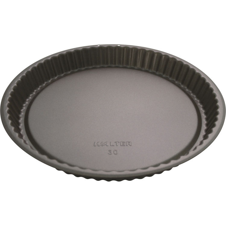 Moule à tarte avec revêtement antiadhésif. Augmentation de la résistance à l'usure grâce à l'utilisation de particules en céramique. Qualité professionnelle. Conduction optimale de la chaleur pour une cuisson uniforme. Résistant aux acides de fruits. Avec bord strié et fond gaufré.