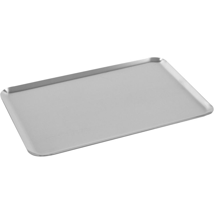 Plateau de présentation en inox poli. Avec bord rabattu.