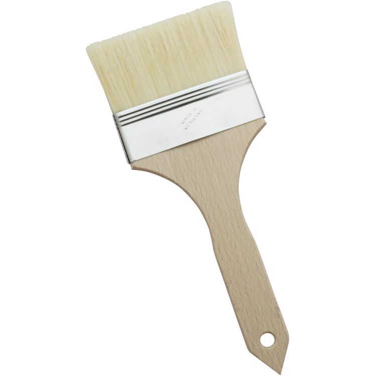 Pinceau avec manche en plastique et œillet de suspension. Poils blancs, sans risque pour les aliments (70% de poils synthétiques et 30% de poils de porc naturels).