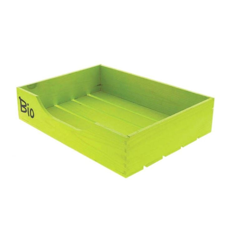 Cette cagette ne convient pas pour le transport et la logistique de vos marchandises. Elle est conçue pour la présentation et la mise en valeur de vos produits dans vos rayons ou vitrines. Avec son marquage BIO et sa couleur verte, cette cagette conviendra parfaitement pour présenter des produits de type primeur d'origine biologique. Les lattes de cette cagette sont clouées et collées.