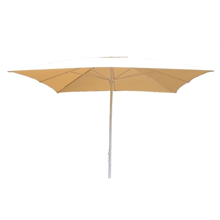 Ce parasol carré est doté d'une armature en aluminium, de 4 baleines et d'une toile en polyester (250 g/m²). Livré sans pied "Ligne CHR" à commander séparément.