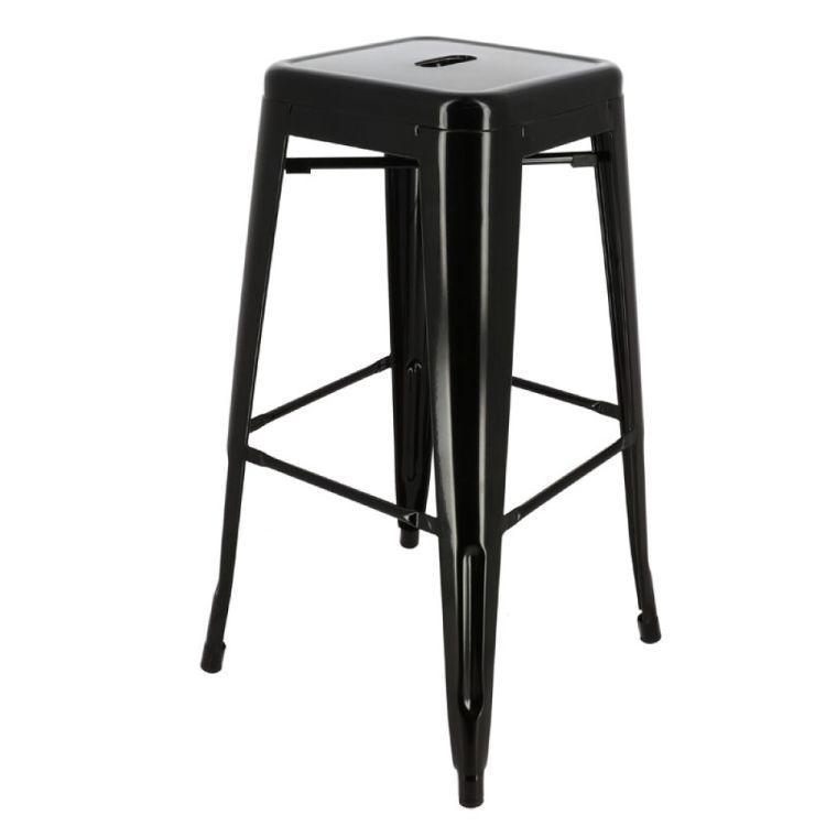 Tabouret de bar au look industriel. Il est conçu pour résister à l'épreuve du temps, tant par sa construction que par son style intemporel. Il se distingue par sa polyvalence et sa fiabilité et offre à vos clients une expérience d'assise à la hauteur de la qualité de votre service. Les pieds évasés avec entretoises à plusieurs niveaux servent de repose-pieds et contribuent à la robustesse de la structure. L'assise carrée avec des coins arrondis facilite le rangement et la manipulation des tabourets.