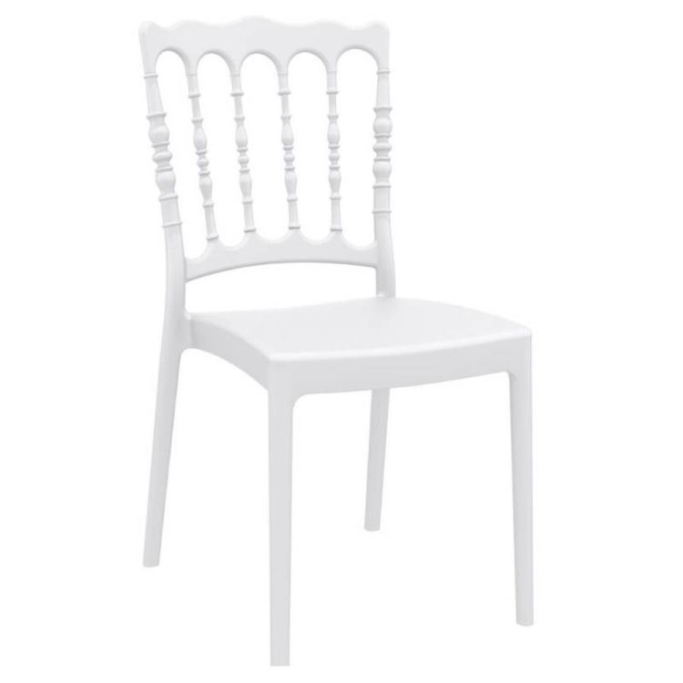 Mettez en valeur vos événements avec notre chaise Napoléon blanche, un symbole d'élégance et de raffinement. Parfaite pour les mariages, réceptions, banquets et autres célébrations, cette chaise apportera une touche d' originalité à votre décoration. Inspirée du style Napoléon III, cette chaise se distingue par son dossier ajouré et ses détails délicats. Son assise ergonomique assure le confort de vos invités tout au long de l'événement. Légère et empilable elle est Idéale pour les réceptions intérieures et extérieures, elle s'adapte à tous les styles de décoration. Fabriquée à partir de matériaux de haute qualité, cette chaise est conçue pour résister à une utilisation intensive.