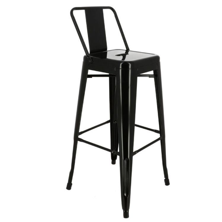 Chaise de bar au look industriel. Elle est conçue pour résister à l'épreuve du temps, tant par sa construction que par son style intemporel. Elle se distingue par sa polyvalence et sa fiabilité et offre à vos clients une expérience d'assise à la hauteur de la qualité de votre service. Les pieds évasés avec entretoises à plusieurs niveaux servent de repose-pieds et contribuent à la robustesse de la structure. L'assise carrée avec des coins arrondis facilite le rangement et la manipulation des chaises.