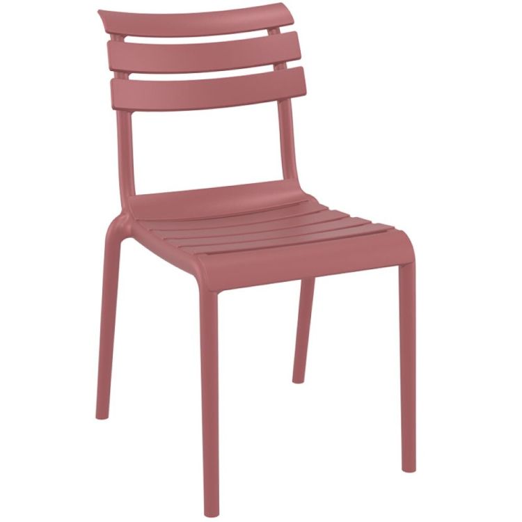 Chaise pour terrasse de restaurant, spécialement conçue pour répondre aux exigences d'une utilisation intensive. La chaise est fabriquée en polypropylène de haute qualité et a été spécialement traitée pour résister aux UV et aux intempéries, ce qui lui assure une longue durée de vie et une couleur constante au fil des ans. Chaise empilable légère et facile à manipuler et à nettoyer. Sa couleur donne une touche chaleureuse et moderne à tout environnement extérieur, tout en étant suffisamment neutre pour s'adapter à une grande variété de décorations. Que ce soit pour un café ou un dîner en terrasse, cette chaise est le choix parfait pour un aménagement de restaurant durable et élégant.