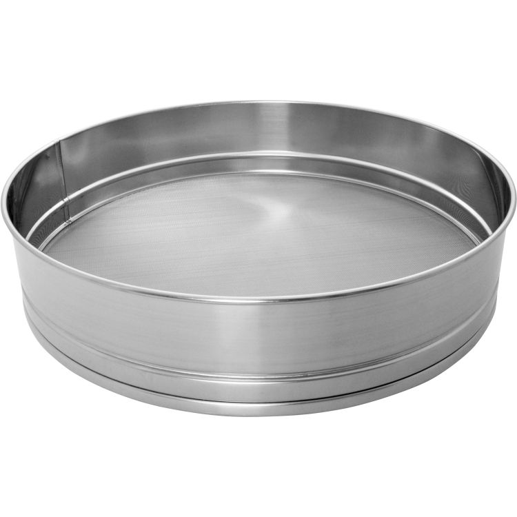 Tamis à farine en inox. Maille fine (0,6 mm). Convient pour les produits secs à tamiser.