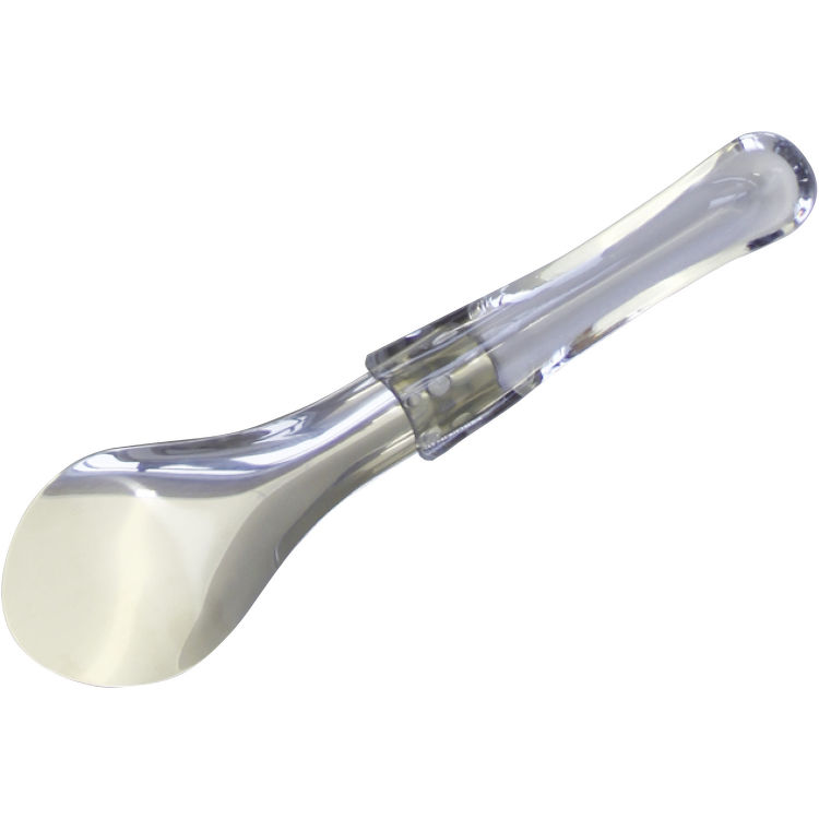 Spatule à glace en inox avec poignée en matière plastique transparente. Passe au lave-vaisselle.