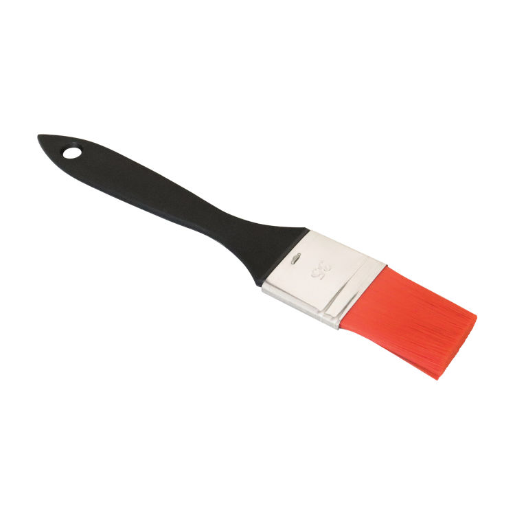 Pennello da cucina con manico in plastica nera e occhiello per appenderlo. Con setole in nylon rosso antiaderenti. Resistente al calore fino a 150 °C.
