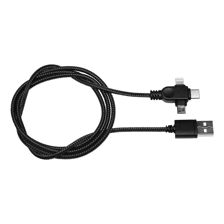 Questo cavo di ricarica lungo 100 cm è dotato da un lato di un connettore USB Type-A per il collegamento alla stazione di ricarica e dall'altro di un connettore di ricarica 3in1 con Apple Lightning, Micro-USB e USB tipo C. In questo modo è possibile ricaricare tutti gli smartphone compatibili.