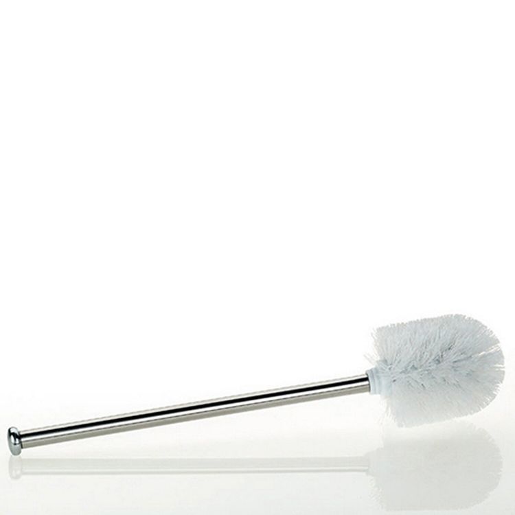 Scopino per WC di alta qualità con manico in acciaio inox. Lo scopino è lungo 35,5 cm, la testina bianca ha un diametro di 8,5 cm. La testina è sostituibile.