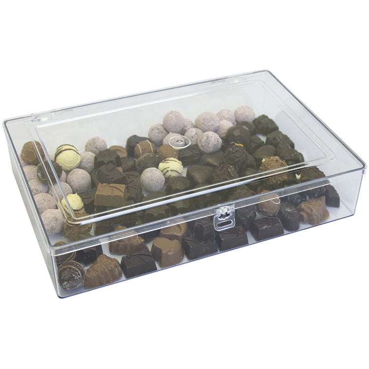 Contenitore per cioccolatini in polistirolo, trasparente e impilabile