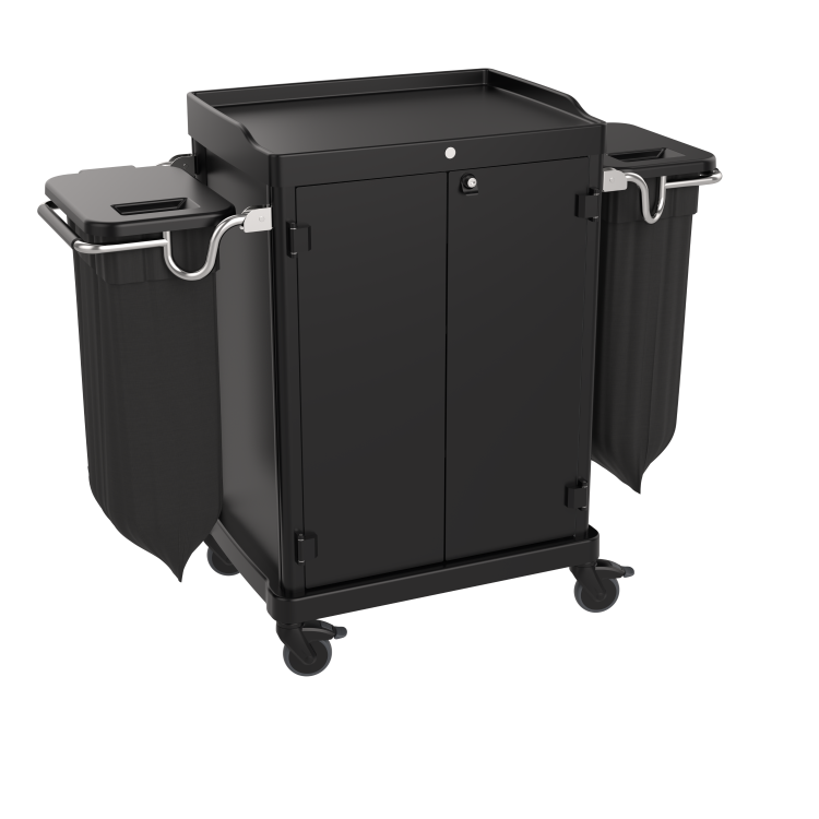 Für höchste Sicherheit und Organisation im Housekeeping-Bereich ist der Housekeepingwagen 4-ESSENTIAL-V3 in elegantem Schwarz die ideale Wahl. Dieser hochwertige Housekeepingwagen, ein Produkt 100% Made in Italy, steht für Qualität und Funktionalität in der professionellen Gastronomie und Hotellerie.