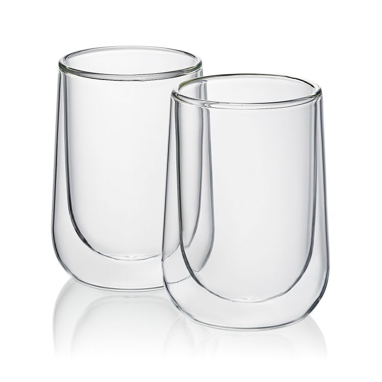 Idea regalo ideale per tutti gli amanti delle bevande calde! Due bicchieri da latte macchiato Fontana a doppia parete in set da due pezzi. Questi splendidi bicchieri sono realizzati in vetro borosilicato. Con un'altezza di 12 cm ciascuno, possono contenere 250 ml di liquido.