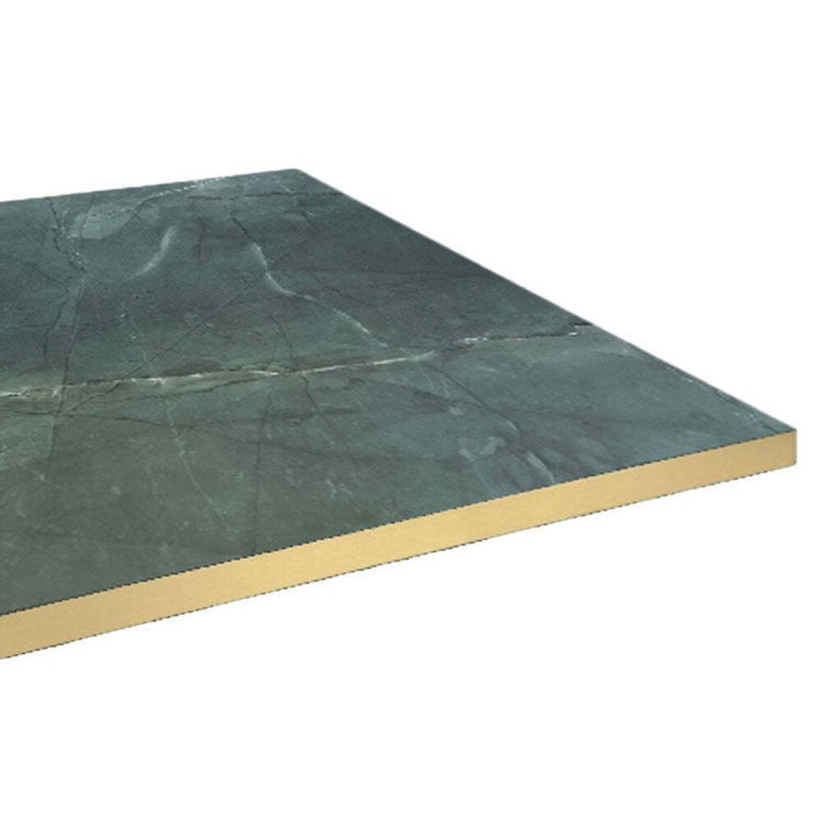 Piano del tavolo quadrato, laminato marmo scuro, bordi colore ottone