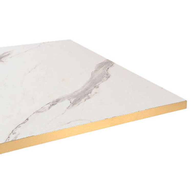 Piano del tavolo rettangolare, laminato marmo chiaro, bordi colore ottone